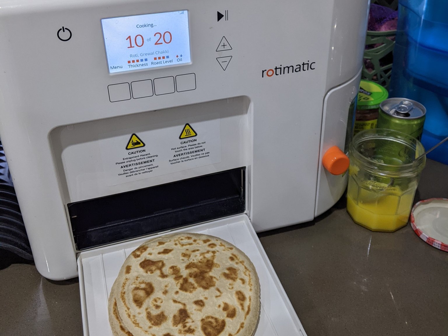 インドのパン、ロティーの自動製造機。コピー機のようにロティ―が排出される