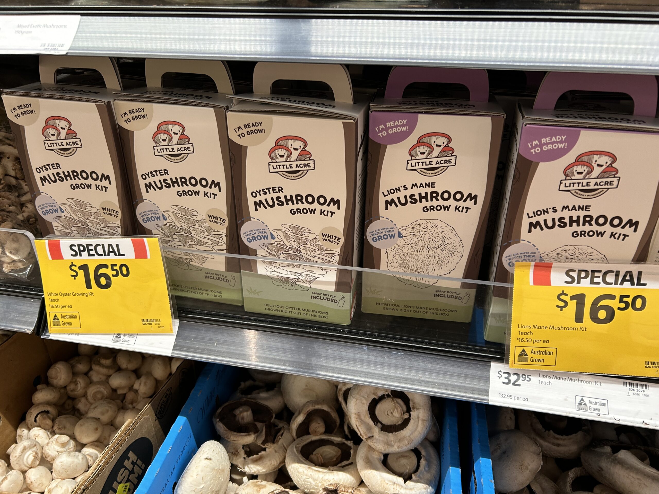 シドニーのスーパーで販売されているマッシュルームの栽培セット
