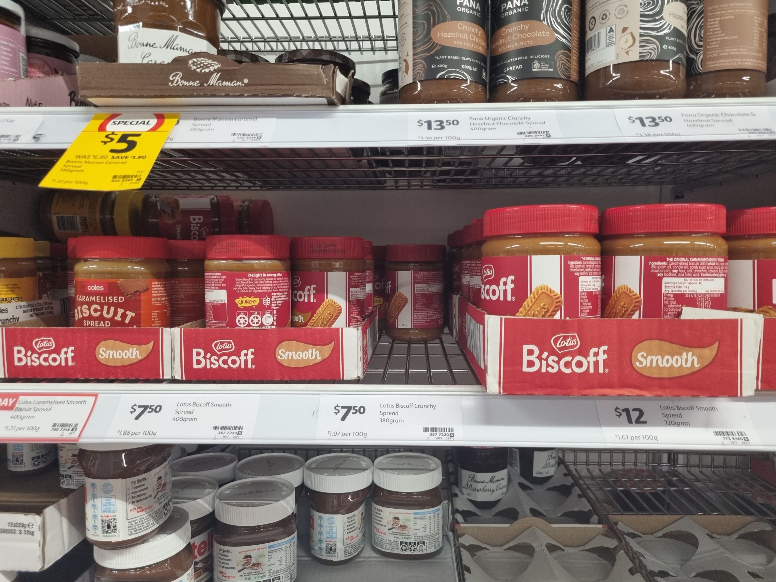 若者に人気のビスケット、ビスコフはスプレッドまで展開中(シドニーのコールズ)