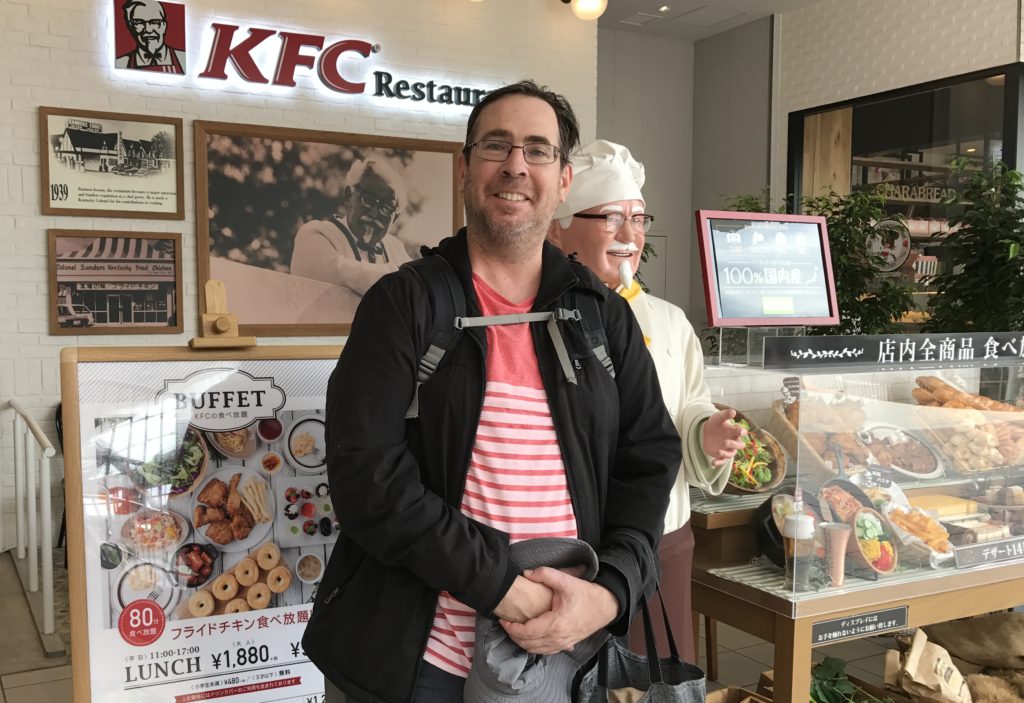 大阪のEXPOCITYでケンタッキーフライドチキンの食べ放題が人気。オーストラリア人男性も満足のよう