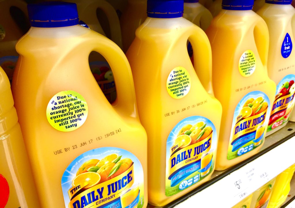 オーストラリア産かんきつ類の輸出好調で国内のジュース原料が不足。[vkExUnit_ad area=more]製品には「外国産原料使用」の注意書き