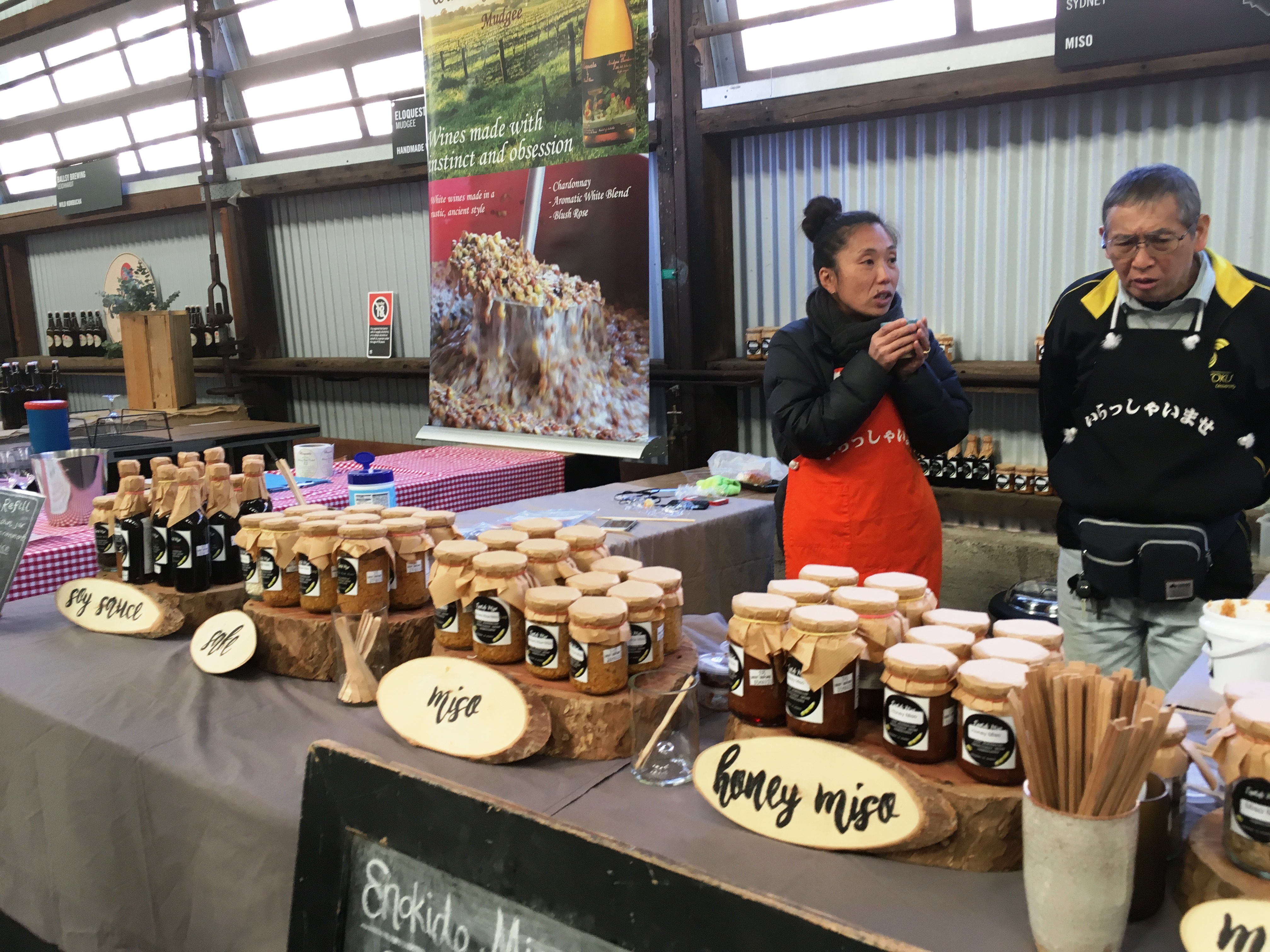 シドニー郊外のマーケットでは、各種自家製味噌が販売されていた