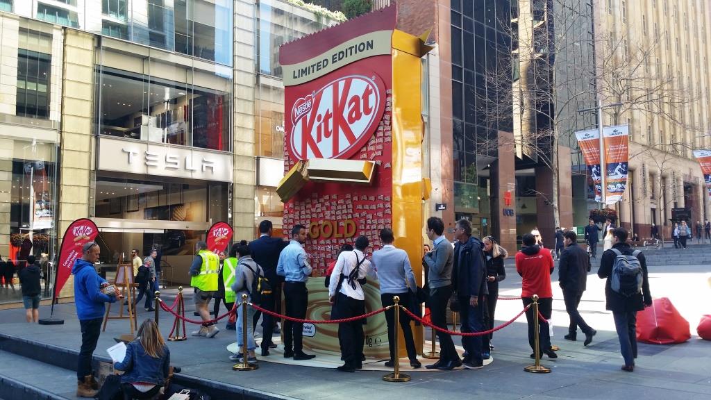 人気菓子キットカット、新商品のプロモーションに集まる通行人