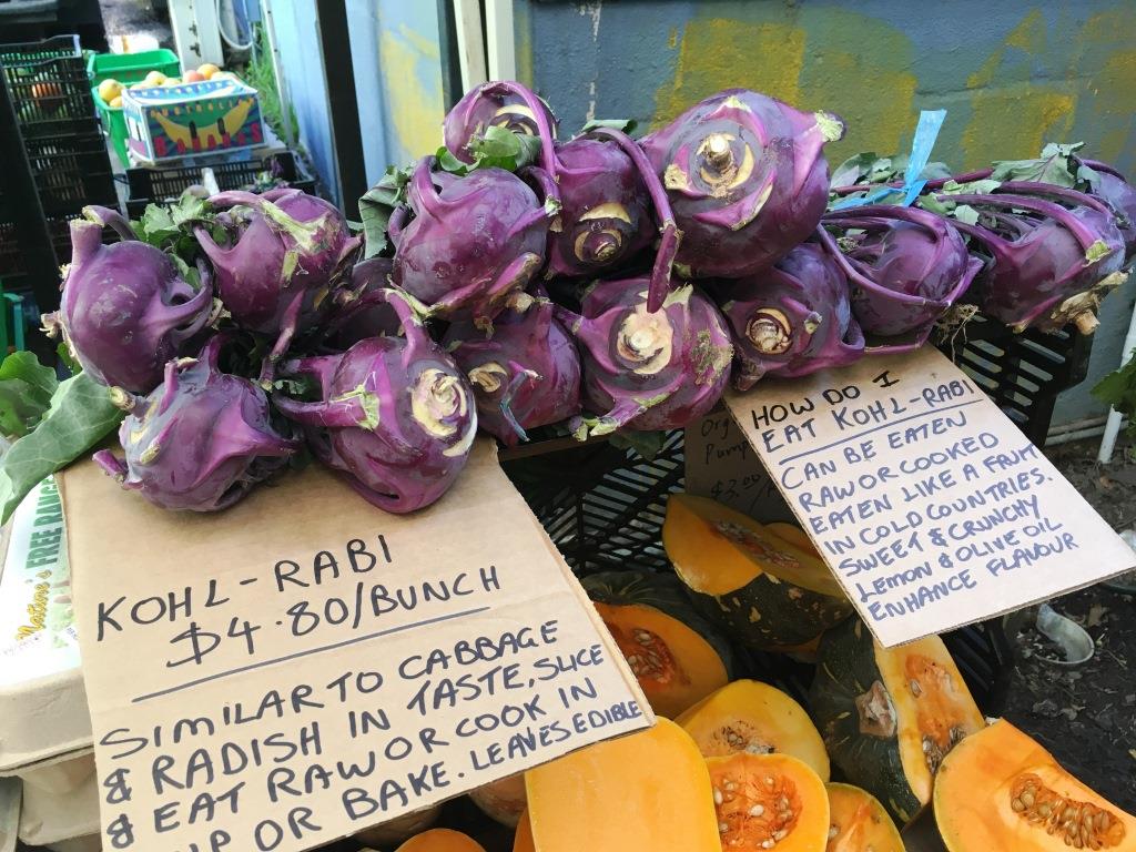 マーケットで見かけた、キャベツの様な食感のコールラビ