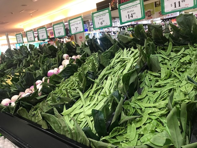 シドニーでは緑色系野菜が花盛り。えんどう豆は日本産よりやや大きめ