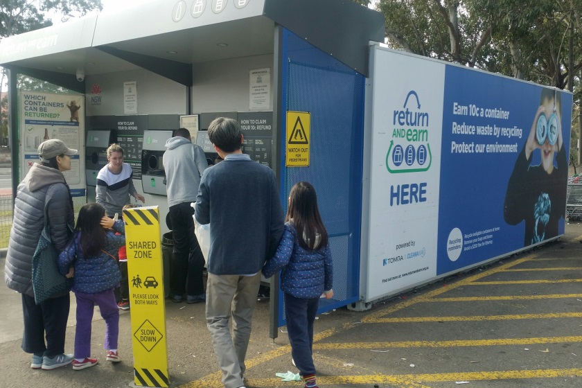 NSW州ではこれまでに20億個を超える使用済み容器が回収された。[vkExUnit_ad area=more]賑わうシドニー郊外の容器回収ポイント。