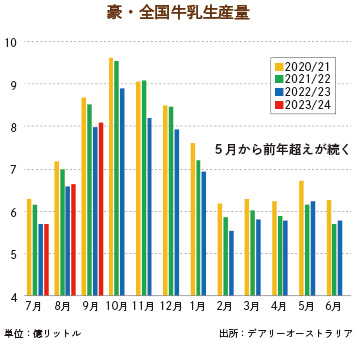 豪9月牛乳生産量も前年越え、回復基調に