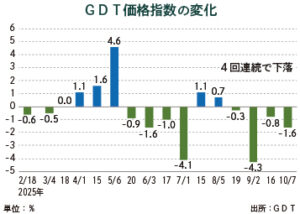 NZオーガニック乳製品、米の需要増で絶好調 2025年10月9日 最終更新日時 : 2025年10月9日 ウェルス編集部 ニュージーランド(NZ)で、2024/25年度(6月期)におけるオーガニック生乳に対する生産者乳価の最終価格は、固形乳1キログラム当たり12.35NZドル(1NZドル=約87円)と、過去最高を記録した。オーガニック乳製品において、世界最大の市場とみられる米国で需要が拡大していることが要因で、乳価は5年連続で上昇している。ファーマーズウイークリーが報じた。 コンテンツの残りを閲覧するにはログインが必要です。 お願い Log In. あなたは会員ですか ? 会員についてFacebookXBluesky