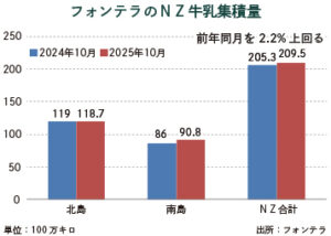 乳製品価格GDT指数、過剰供給で下押し続く 2025年12月5日 最終更新日時 : 2025年12月5日 ウェルス編集部 ニュージーランド(NZ)の乳業最大手フォンテラなどが運営する乳製品のオンライン競売システム「グローバル・デアリー・トレード(GDT)」の2日の競売で、GDT価格指標は前回から4.3%下落し、1トン当たり3,507米ドル(1米ドル=約155円)となった。下落は8回連続で、今年1月以来の低水準となる。世界的に生乳生産が増加する中で、需要は底堅いものの追加供給を吸収しきれず、軟調な推移が続いている。 コンテンツの残りを閲覧するにはログインが必要です。 お願い Log In. あなたは会員ですか ? 会員についてFacebookXBluesky