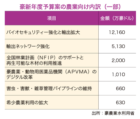 豪新年度予算、農業に2.2億$ バイオテク強化も 2018年5月11日 最終更新日時 : 2022年4月28日 ウェルス編集部 オーストラリア連邦政府は新年度(2018/19年度)予算案で、農業セクターの国際競争力強化に向けて、2億2,400万豪ドル(1豪ドル=約82円)を投入する方針だ。 コンテンツの残りを閲覧するにはログインが必要です。 お願い Log In. あなたは会員ですか ? 会員についてFacebookXBluesky