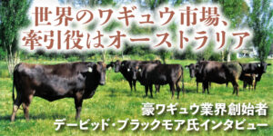 歴史と風土に培われた日本固有の財産、「和牛」。しかし現在、世界の高級牛肉市場を席巻するのはオーストラリア産の「ワギュウ」だ。1990年代にオーストラリアに入った和牛は独自の発展を遂げ、今や豪産「ワギュウ」の輸出量は本家「和牛」の約10倍に上る。その基礎を築いたのは、オーストラリアで最初にワギュウを生産した「ワギュウの父」こと、デービッド・ブラックモア氏(71)。日本が和牛の遺伝資源の輸出規制を強める中で、氏は高品質のワギュウ生産にこだわりながら、世界に向けて遺伝資源も輸出する。オーストラリアのワギュウ産業の創始者に話を聞いた。【ウェルス編集部】