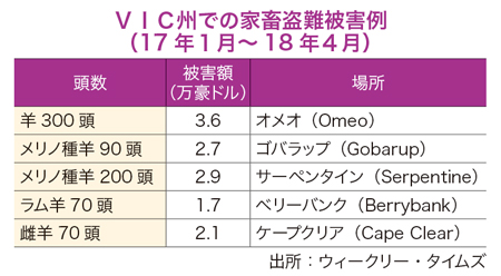 オーストラリアで羊や牛などの家畜や農業用機械の盗難が深刻化している。